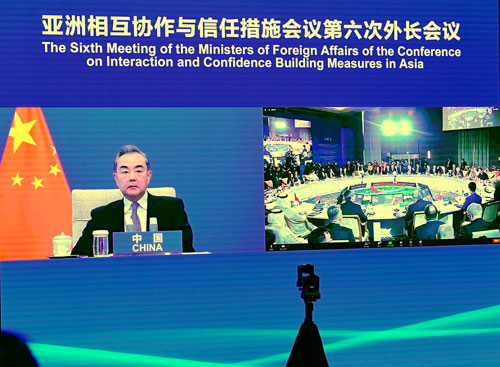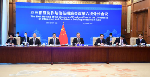 El consejero de Estado y ministro de Relaciones Exteriores, Wang Yi, asistió el 12 de octubre de 2021 a la 6ª reunión de ministros de Relaciones Exteriores de la Conferencia de Interacción y Medidas de Confianza en Asia (CICA, por sus siglas en inglés), a través de un enlace de video, y pronunció un discurso titulado Dar juego a las ventajas de la cooperación de la CICA para construir una comunidad de destino en Asia.