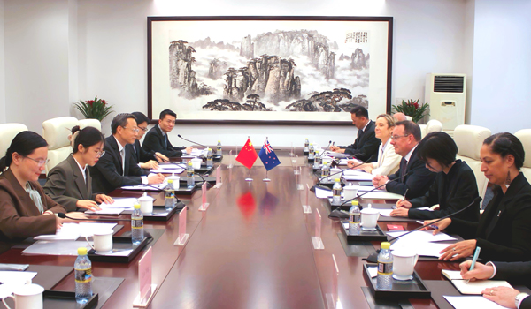 2026年4月13日,外交部领事司司长龙舟与新西兰外交贸易部领事司司长伯吉斯在北京共同主持中新第四轮领事磋商。双方就加强领事合作、便利人员往来、维护公民安全与合法权益等议题深入交换意见。