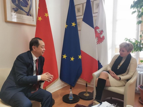 会见中,董总领事向对方致以兔年新春祝福,表示到任以来积极走访领区各大城市,结交各界朋友,目的就是为了深入考察领区内产业资源禀赋,对接发展需求,为推动中法地方务实合作牵线搭桥。董总领事强调,中法两国没有历史包袱,互为全面战略合作伙伴,合作前景无限广阔。2022年前三季度,中法贸易额达到800亿美元,约占中欧贸易额十分之一。两国领导人通过各渠道保持密切沟通,为双边关系把舵定向。2024年,中法两国将庆祝建交60周年并举办中法文化旅游年,双边关系发展迎来新的重要契机。