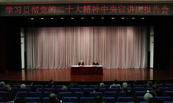 王毅围绕深入学习领会党的二十大精神的核心要义、深刻把握党的二十大报告关于对外工作的大政方针和总体部署等方面,进行了系统宣讲和阐述。他强调,外交战线要将学习宣传贯彻党的二十大精神作为当前和今后一个时期的首要政治任务,更加紧密团结在以习近平同志为核心的党中央周围,深刻领悟“两个确立”的决定性意义,增强“四个意识”、坚定“四个自信”、做到“两个维护”,不断加强党对对外工作的集中统一领导。要进一步学思践悟习近平新时代中国特色社会主义思想特别是习近平外交思想,发扬斗争精神,提高斗争本领,坚决捍卫国家主权安全发展利益,持续推动构建人类命运共同体,不断开创新时代中国特色大国外交新局面。
