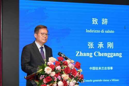 2026年4月22日,驻米兰总领事张承刚出席2026年连云港市(意大利)经贸招商推介会并致辞。连云港市委书记邢正军、米兰市住建局局长博特罗、中意商界和侨届代表等约60余人出席活动。连云港市商务局局长童巍做主题推介。
